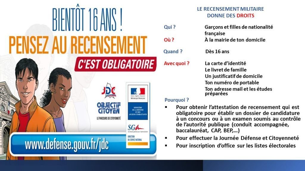 A partir de 16 ans, le recensement militaire est obligatoire.